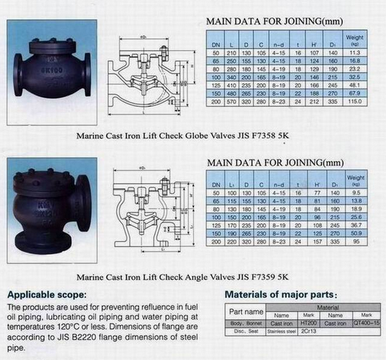 本文中所有文字、數(shù)據(jù)、圖片均只適用于參考。需要查看更多的船用日標(biāo)鑄鐵直通止回閥F7358性能參數(shù)、結(jié)構(gòu)尺寸參數(shù)、價(jià)格等詳情,或要求高質(zhì)量印刷樣本,請(qǐng)聯(lián)系我們。