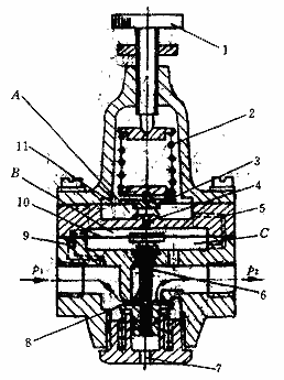 圖1—直動式溢流減壓閥的結構圖