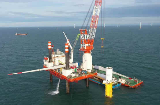 近日,龍源振華承建的湛江徐聞海上風(fēng)電場項目EPC總承包Ⅰ標(biāo)工程進(jìn)度再創(chuàng)新高,不斷提升單套無動力船機設(shè)備6.45兆瓦大容量機型海上風(fēng)機吊裝施工速度,創(chuàng)造了10天完成5臺的最新紀(jì)錄!