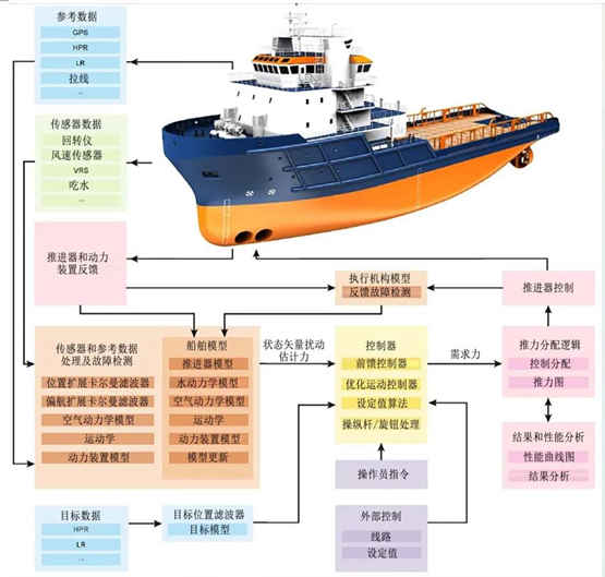 DP系統是一種多學科高度融合的技術密集型復雜系統,它采集全船關鍵數據,通過控制船舶各推進器,使船舶依照操作者的指令循跡、保持位置或艏向,廣泛應用于平臺支持船、遠洋科考船、海洋鉆井船、布纜船、救援船、拖船等特種領域。