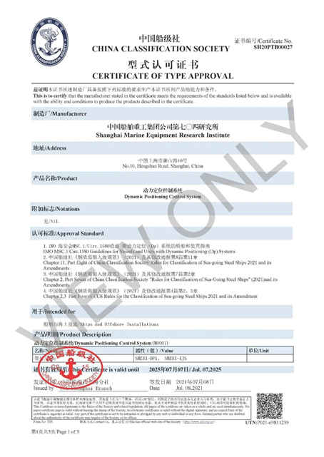 8月5日,中國船舶集團七〇四所動力定位控制系統(簡稱DP系統)獲中國船級社授予的國產化型式認可證書,成為國內第一家滿足中國船級社2021年最新鋼規要求的動力定位控制設備及系統供應商。