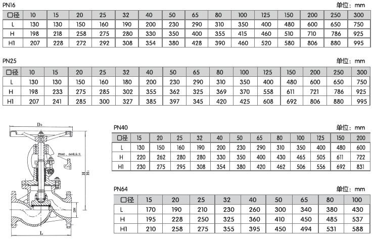 | 公稱壓力 | 1.6 | 2.5 | 4.0 | 6.4 | 10.0 | 16.0 |