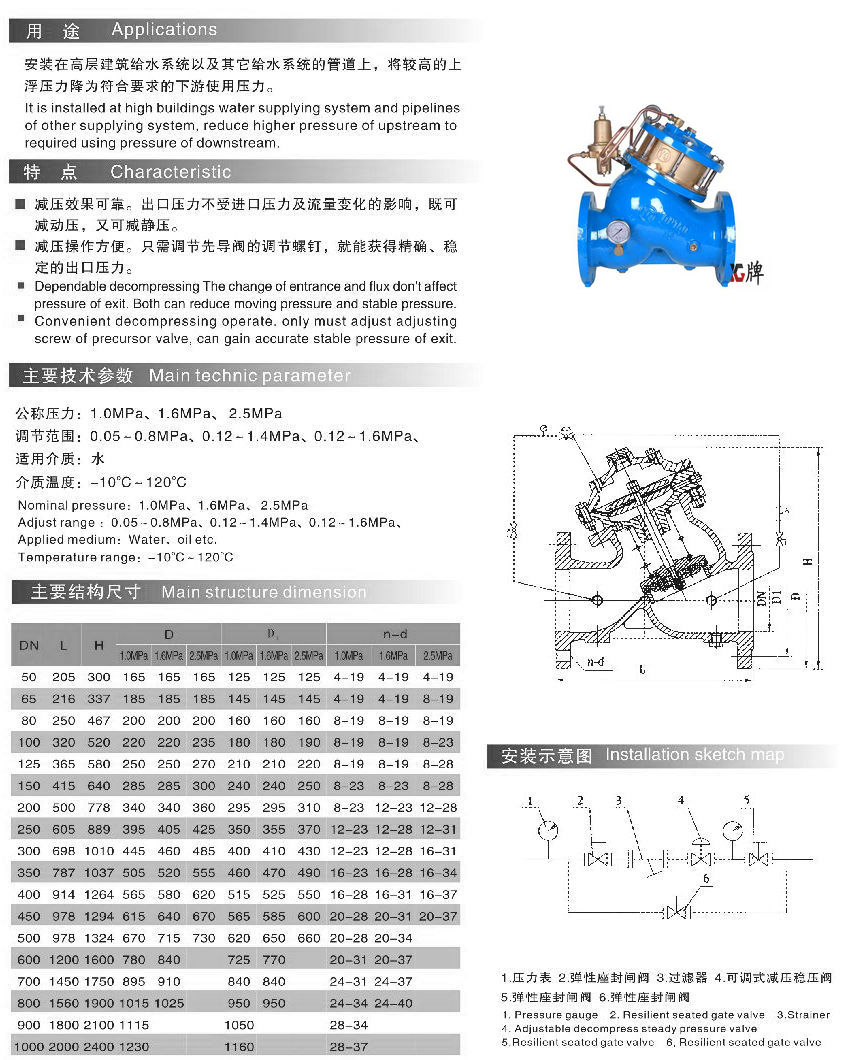 2、操作方便。工作壓力調定后,當上游壓力或流量變動時主閥自動調節,穩定了下游壓力。
